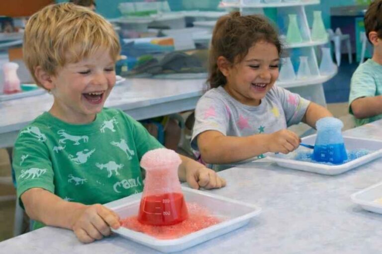 Enjoy 3 hands-on science experiments , including Bubble Eruption, Magic Snow, and Bouncy Ball.